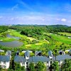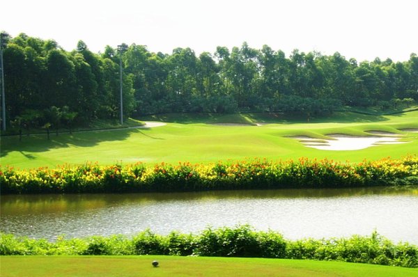 Foshan Junan Country Garden Golf Village Located in the Pearl River Delta alluvial plain, this 18-hole water-themed course has a par of 72. The 4th hole is the most difficult, while the 9th and 18th are the longest, allowing golfers to fully showcase their skills. Lakes crisscross the course, and fairways wind through them. Lush trees and well-maintained lawns bloom year-round, creating a tranquil urban oasis with swimming fish and singing birds. Designed by British master Denis Griffiths, who leveraged the flat terrain, the course features abundant trees, water bodies, and strategic fairways that turn nearly 180 degrees every two holes, blending beauty with challenge.