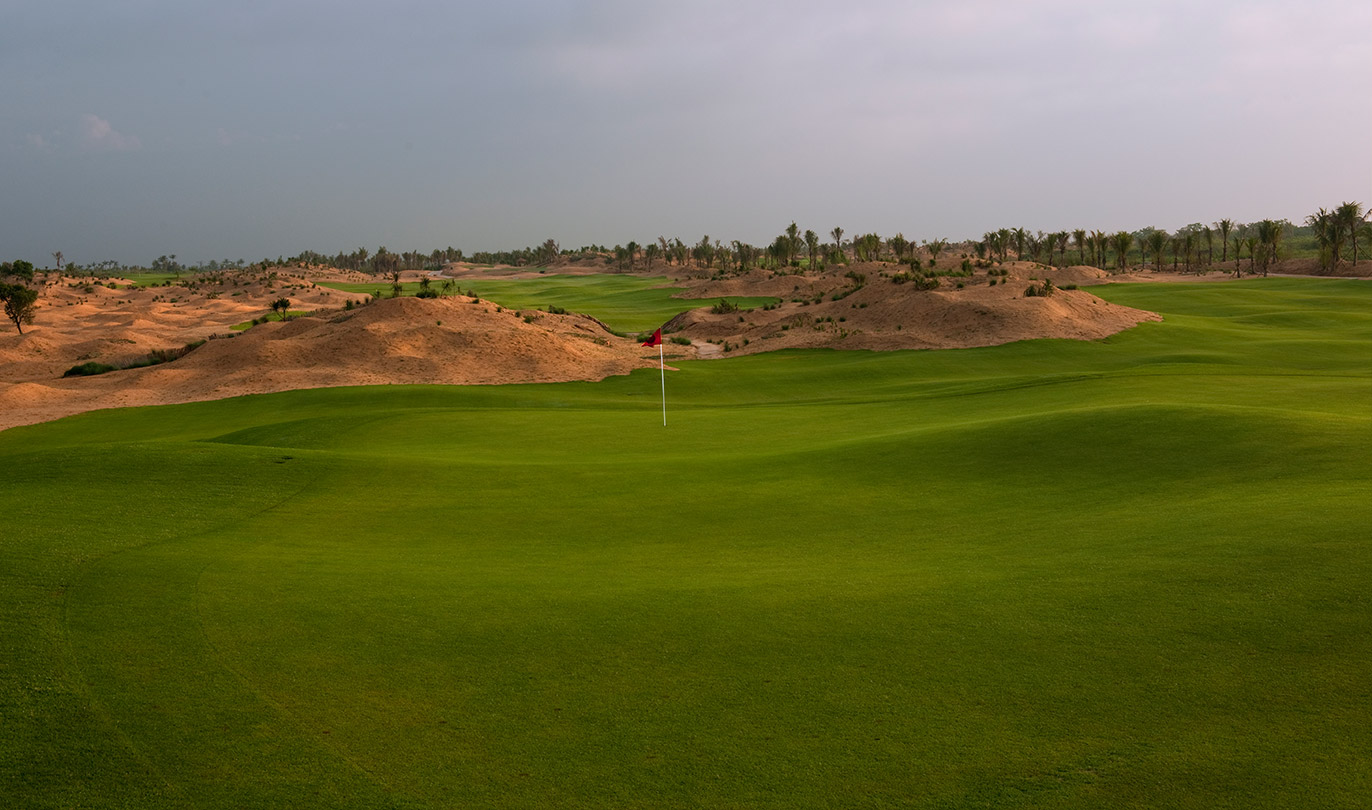 A windswept world of towering dunes and native seaside plants. Giant rolling greens mean monster putts, yet finesse—not length—wins the day.