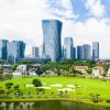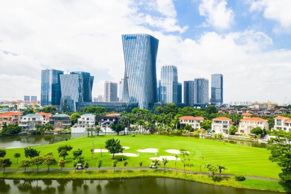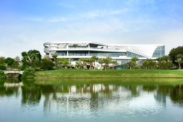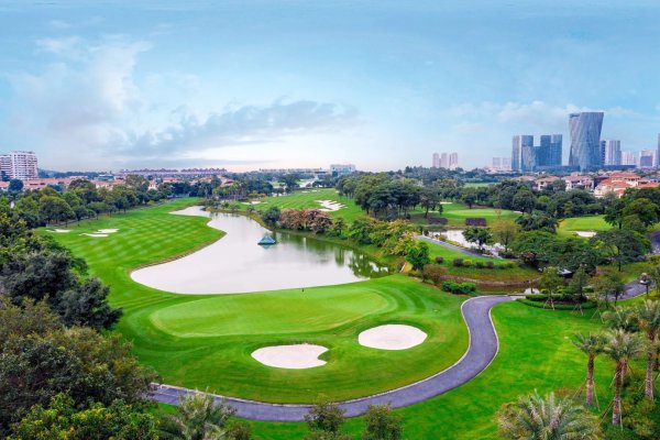 Royal Orchid International Golf Club Located in the Pearl River Delta alluvial plain, this 18-hole water-themed course has a par of 72. The 4th hole is the most difficult, while the 9th and 18th are the longest, allowing golfers to fully showcase their skills. Lakes crisscross the course, and fairways wind through them. Lush trees and well-maintained lawns bloom year-round, creating a tranquil urban oasis with swimming fish and singing birds. Designed by Nick Faldo, who leveraged the flat terrain, the course features abundant trees, water bodies, and strategic fairways that turn nearly 180 degrees every two holes, blending beauty with challenge.